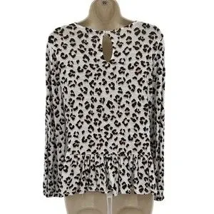 Lucky Brand T-Shirt XS Women's White Pink Multi Animal Print Peplum Long Sleeve