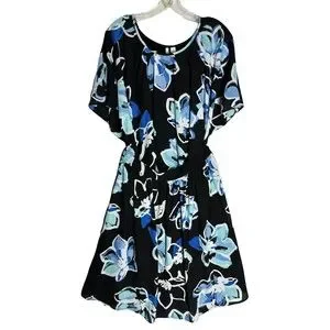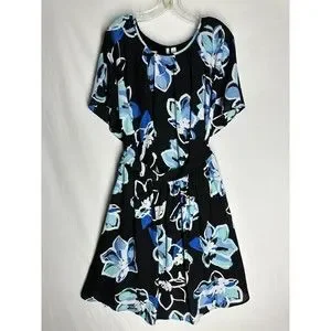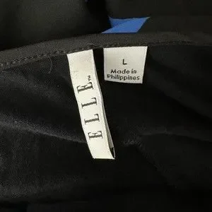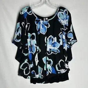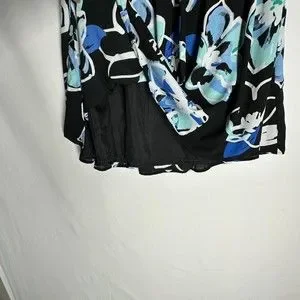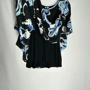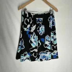 Elle Womens 2 PC Blouse Skirt Set Size L Black Blue Floral Print