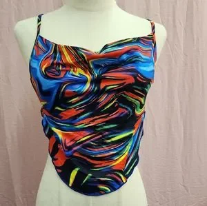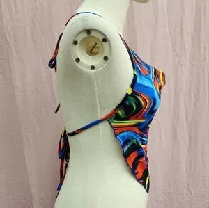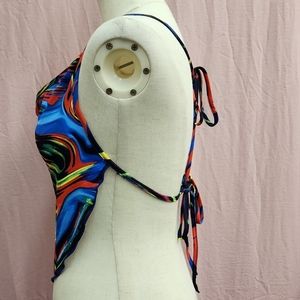 SHEIN BAE Tie Backless Marble Print Halter Top-(X-Small)