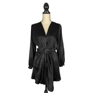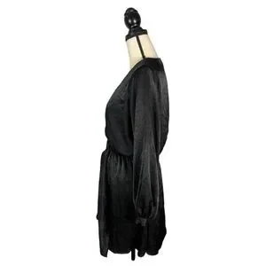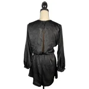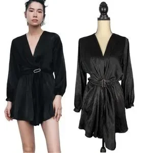 Zara NWOT Black satin romper long sleeves -looks like a dress