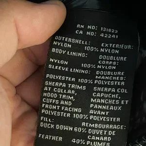 This glossy black down-filled puffer jacket will bring you into your sexy oil-slick era without needing any Dawn to clean the wildlife around you. This ladies jacket is New with Tags indicating an original price of $330 and is currently listed for $250 at Macy's as of the writing of this post. I included the online description and size chart as I was told by my 13-year-old niece that this large runs smaller than expected and what do I know anyway because I am an "old."