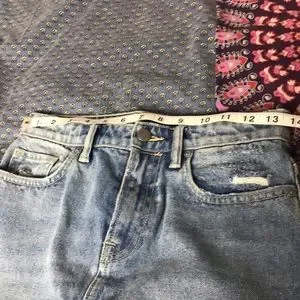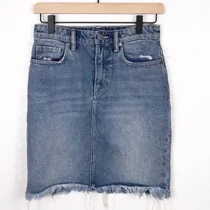 All saints denim frayed edge skirt! Absolutely beautiful but runs smaller than you would think a size 4 would be. I’ve included measurements please refer to before purchasing.