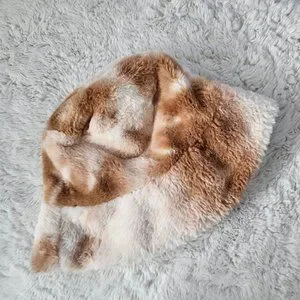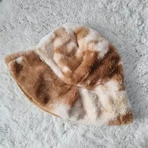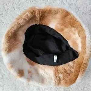 Super soft and fuzzy faux-fur bucket hat in a caramel frapp color!