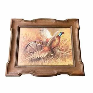 Vintage 1981 Homco Hunting Pheasant Print Faux Wood Frame Rustic Farmhouse