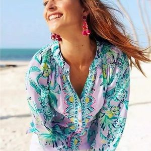 Lilly Pulitzer NWT Elsa Silk Top Lilac Its Impawsible Size XXS,XS $168