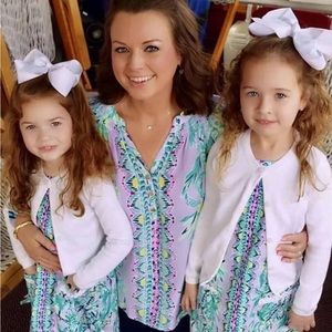 Get ready for a style epiphany: this silk blouse is the secret workhorse of your closet. You can wear the Elsa Top tucked in or worn out, sleeves pushed up or blissfully long, styled with a belt over leggings, peeking out from under a blazer, draped over the top of a pencil skirt...Elsa is one shirt with an endless number of looks year-round. This season, we're making Elsa's job a little easier by bringing you bright new prints and colors to spice up your collection. Girls dresses sold separately🦩