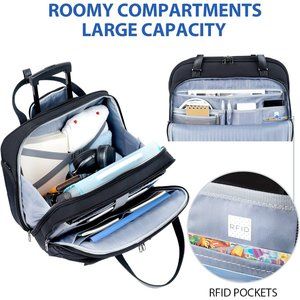 Women's Black Water Repellent Rolling Laptop Bag 15.6 inch