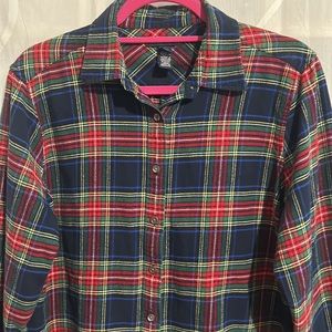 Lands End Navy, Green & Red Plaid, 100% Cotton, Button Down Shirt, Size Medium