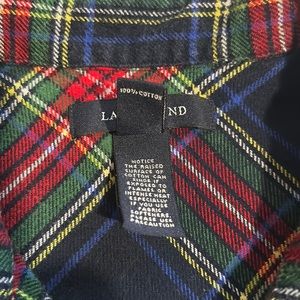 Lands End Navy, Green & Red Plaid, 100% Cotton, Button Down Shirt, Size Medium. Measures 21 inches from armpit to armpit, 27 inches from shoulder to hem. In great condition.