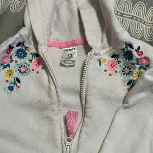 Used sweaters and jackets sizes from 12 to 18 months. White jacked has small stain on sleeve.