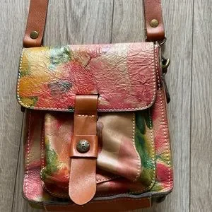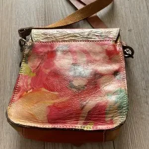 Genuine leather, Patricia Nash, handstitched, distressed Crossbody bag beautiful BoHo Floral design