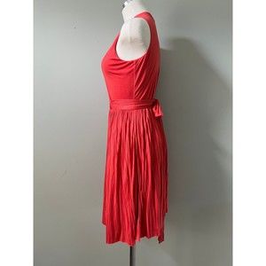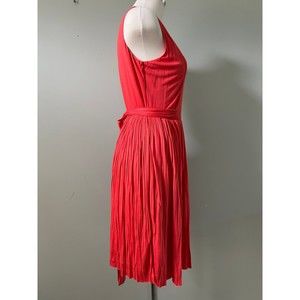 Spring into fall with this buttery soft layers of cotton fully lined orange dress by Banana Republic! The dress features a V-cut bust and a wrap-around tie that is long enough to go around the dress 1.5 times.
