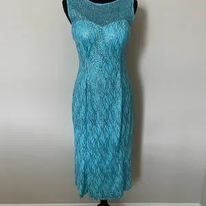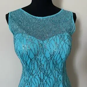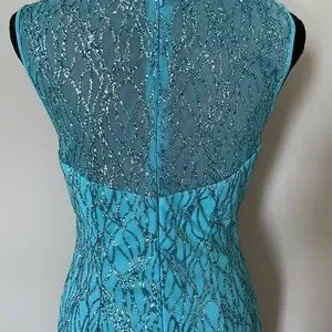 Bought for a wedding but it was full length. Had it taken up to midi length. Gorgeous sparkly dress. Received a ton of compliments. Beautiful light teal color.