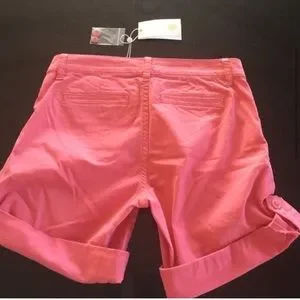 Tory Burch faded spiced coral shorts, size 24. Button cuff 5.5” inseam, when uncuffed 8.5” inseam. NWT