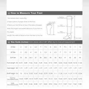 Approx measurements - Heel Height: 1.5 in; Platform Height: 0.75 in; Circumference: 11.12 in Measurements vary based on size.