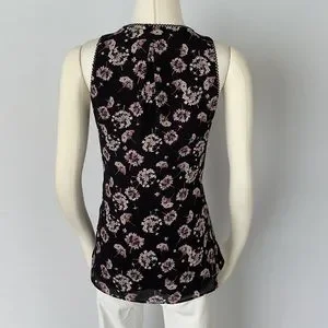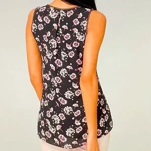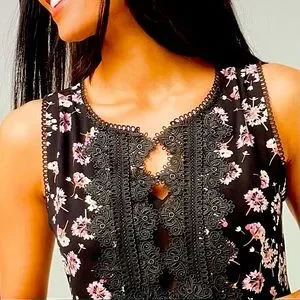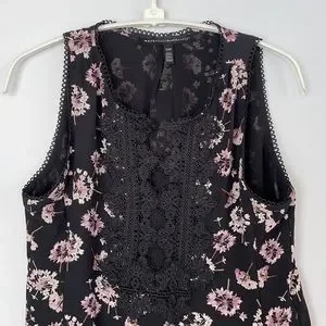 NWOT WHBM Sleeveless Floral Print With Scalloped Lace Top....Split Neckline with Lace Detail....Pullover Style..Size X Small Petite...Lined..100% Polyester Machine Wash..Length 25 1/2” From Shoulder in back… 23 1/8’ From shoulder to Bottom in front…17 1/3’ laying flat pit to pit…