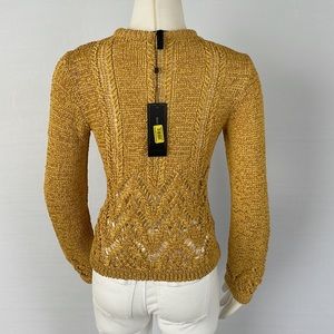 NWT BCBG Golden Yellow Sweater Size Small.. 55% Cotton 45% Polyester….19’ laying flat pit to pit… 22 5/8’ Length