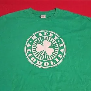 'Happy Alcoholiday' Shamrock clover March 17th graphic tee green 2XL EUC Novelty