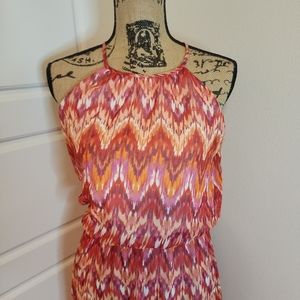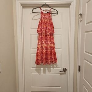 GUESS size 4 Chevron Dress. Super cute dress with lots of bright, happy colors! this dress features a cinched waist (has loops for belt but no belt included), keyhole back, and a fun, funky pattern. A show-stopper for sure! I purchased this dress recently but it did not fit, so hoping to pass this beautiful dress on to someone else!