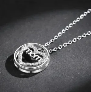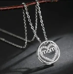 925 Sterling Silver Plated Heart Mom Pendant Necklace in Silver Tone