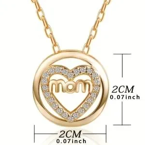 925 Sterling Silver Zircon Heart Mom Pendant Necklace