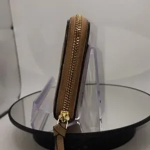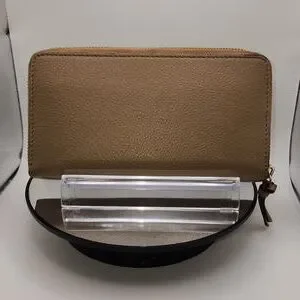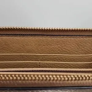 Tonal stitching highlights the cutout logo detailing this pebbled leather continental wallet that's just the right size for carrying your cash, smartphone and other small essentials.