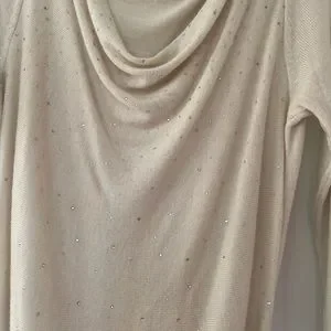 Reitmans bling sweater top shirt beige cream white rhinestone crystals silver. Size small. Very cute bling sweater ๐