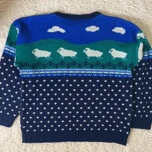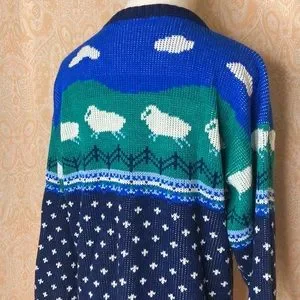 Vintage knit sweater sheep clouds pattern size large