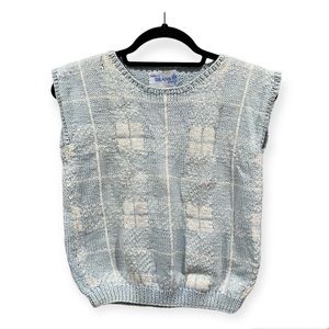 Deans of Scotland Vintage Knit Fair Isle Sweater Vest Light Blue White Small