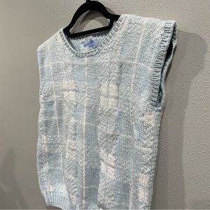 Keywords: womens fashion preowned preloved secondhand thrifted deans of scotland vintage sweater fair isle sweater vest light blue winter knit nordic snow alpine cozy plaid