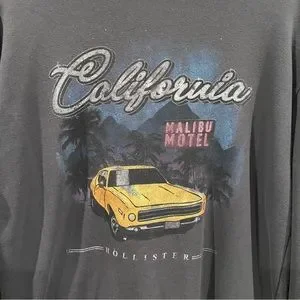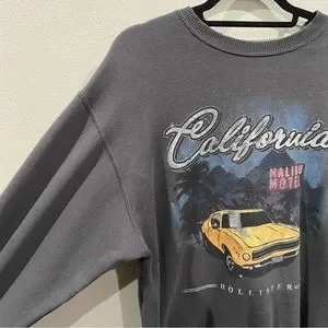 Hollister California Malibu Hotel Graphic Crewneck Pullover Sweatshirt Gray X-Small
