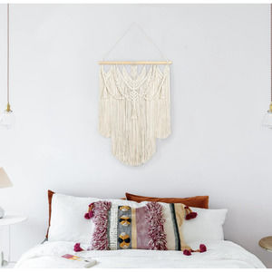 Its symmetrical design will fit in any interior. This macrame hanging makes a perfect statement piece for hanging over the head of a bed or baby crib, over a couch, fireplace mantel or desk, or near a window for adding a cozy touch to your living or work space.