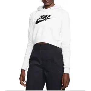 Nike Sportswear Essential Women Birch Heather Solid Logo Cropped Hoodie Size XS.