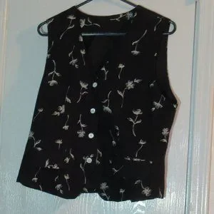 Black Lined Floral Vest Medium