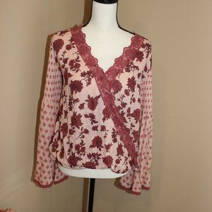 "TAYLOR & SAGE" Engineered Printed Wrap Long Sleeve Top SZ L