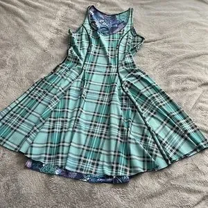 NWT Blackmilk Tartan Aqua vs Koi Purple Inside Out Dress ~ LIMITED Size Large