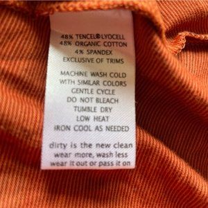 Brand new with tags. Faux wrap dress. Size S. When laying flat pit to pit is 18”, waist 14.5”, length is 37.5”. Organic cotton, lyocell and spandex.colour is a rust/ orangish colour