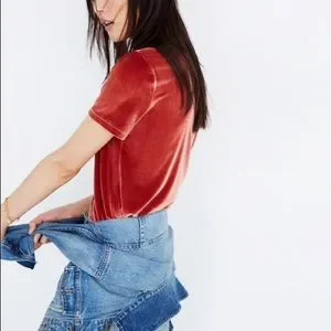 Reposhing this item I purchased from @heyitscourtney. This velvety mock neck tee by Madewell is a staple for all occasions. It fits in anywhere, paired with some jeans and tennies for a day out with friends, but its velvety fabric give it a luxe look perfect for date nights or holiday parties.