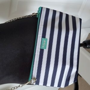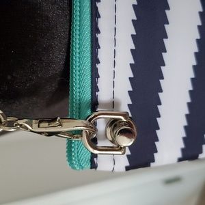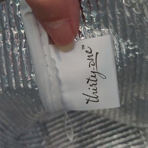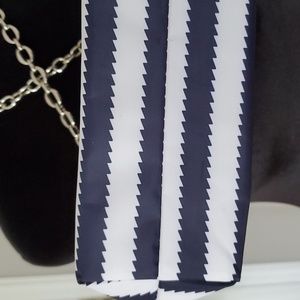 upcycled seller had heavy silvertone 40 inch chain added as well as 2 D rings.