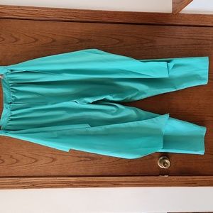 Deep Water Bay Misses Vintage Pants with attached wrap around skirt Size 13/14; These pants have two front pockets as shown in photo and middle back zipper; The waist is not stretchy and measures 30 inches; The hips measure 48 inches and inseams is 28.5 inches. The true color is in the first four photos - a soft green color; I was unsure how to exactly tie the wrap around skirt so just loosely tied it in back. Very unique clothing item. I just laundered it and dried it. Came out as shown - could be lightly ironed if you wish but looks pretty good.