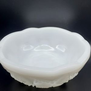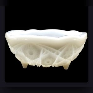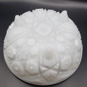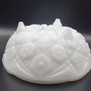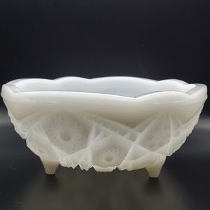Beautiful McKee Glass Toltec pattern bowl. The footed bowl is white milk glass.