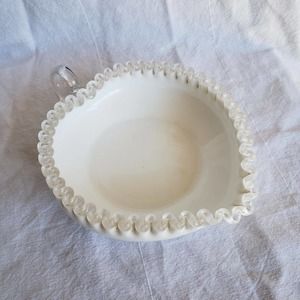 Vintage Fenton Silver Crest Heart Shaped Relish Bowl with Handle 1955-1980