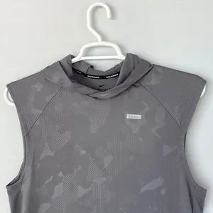 Nike Dri Fit Sleeveless Hoodie..Size Small.. Gray.. 88% Polyester 12% Spandex…20’ laying flat pit to pit…28’ Length..
