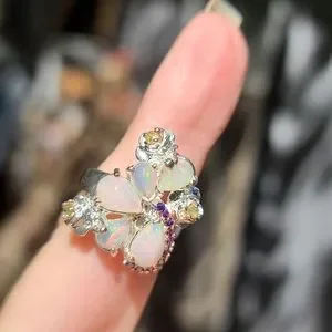 Opal 11k amethyst 3k & Peridot sterling ring sz6