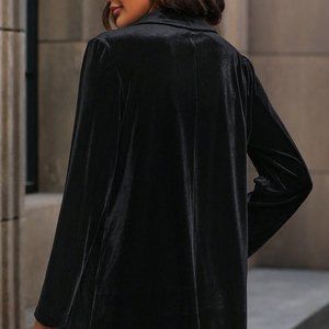 Black Casual Womens Double Breasted Velvet Blazer & Shorts