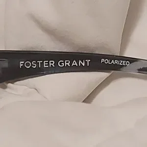 Foster grant sunglasses square shape grey tones but gold coloue at hinge classy stylish yet affordable matches anything throw in a wee cover bag another brand.