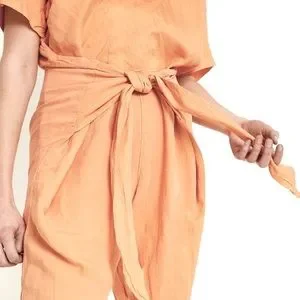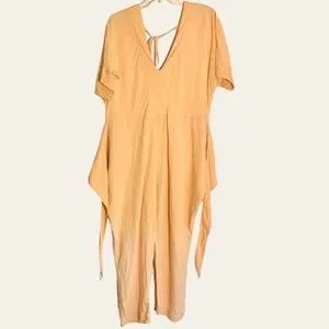 Free People Shining Sun Wrap Linen Jumpsuit Romper Playsuit Orange Cutout Sz L