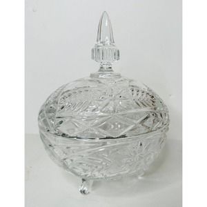 Vintage Clear Crystal Glass 10" Tall Pedestal Candy Bowl Dish with Steeple Lid