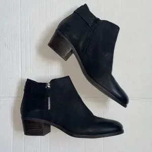 Steve Madden Kyle Nubuck Stacked Heel Black Ankle Boots NWOT