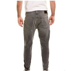 - Zack skinny in car with belt hoops, whiskering and fading details, and classic five-pocket styling